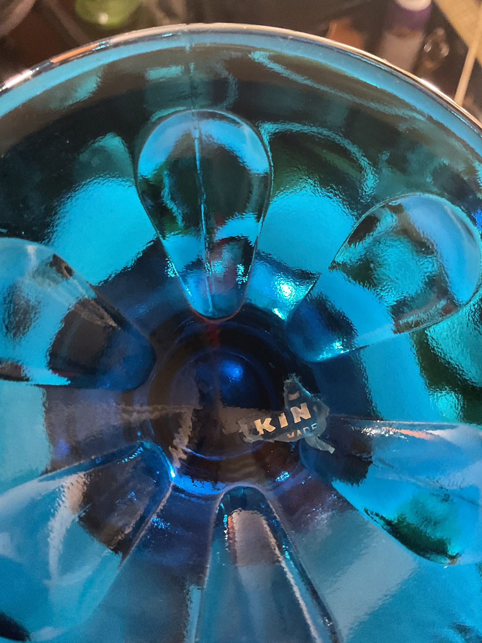 Empoli Teal Blue Long Stem Ribbed Brandy Sniffer